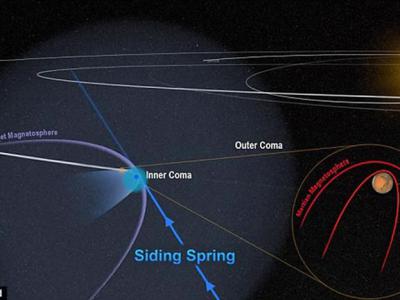 美国宇航局的杰瑞德教授表示塞丁泉彗星很可能带走了火星的上层大气,就像一场强烈...