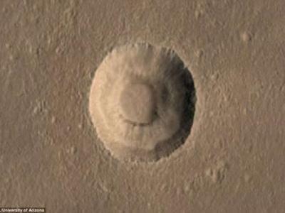 科学家发现火星表面一处奇特的阶状陨坑,认为是碰撞陨星穿过不同物质层所形成的。...