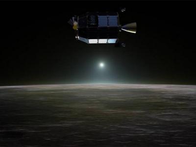 艺术家绘制的月球大气与粉尘环境探测器(LADEE)在月球轨道运行,最新勘测结果显示...