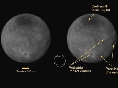 卡戎上最突出的撞击坑位于南极,大约有96公里的直径,周围有明显的辐射带 (神秘...