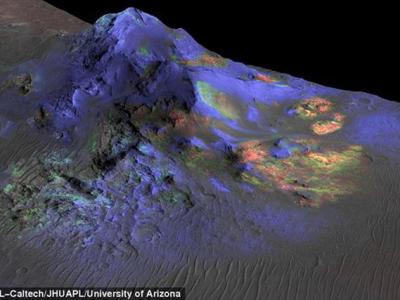 美国宇航局研究人员首次在火星陨石坑中发