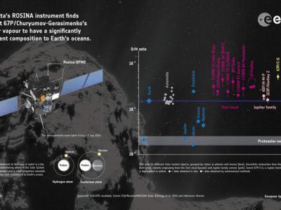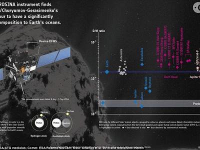 罗塞塔探测器对67P彗星进行的氢同位素测量显示其成分与地球海洋水体氢同位素特征...