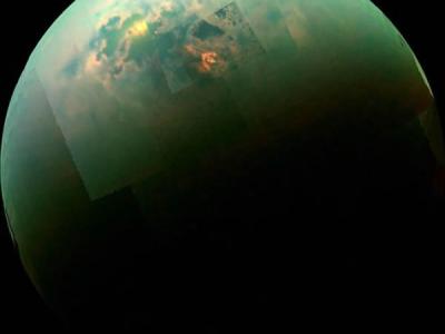 美国国家航天局拍摄到的日光于土卫六甲烷
