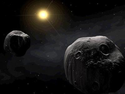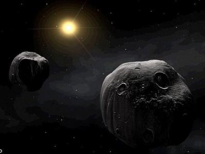 艺术家绘制的两颗小行星组成的天体系统,科学家认为这样的天体系统撞击了瑞典 ...