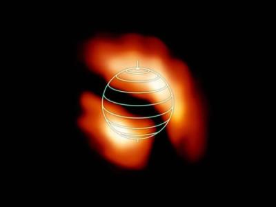这是显示土卫六高层大气中异氰化氢(HNC)分布的ALMA图像。可以看出在这颗卫星的...