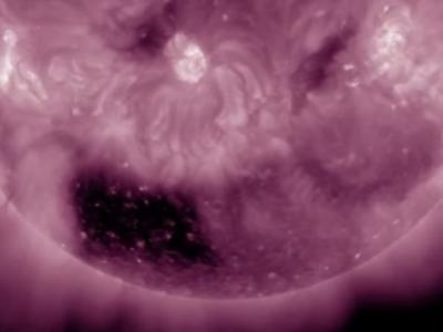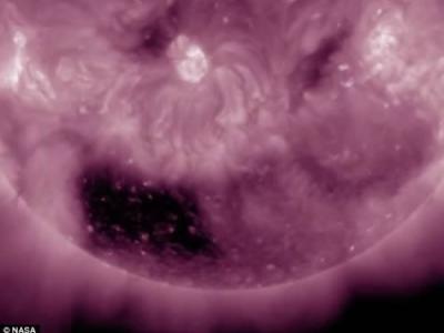 NASA图片显示太阳南极出现日冕洞 (神秘的地球报道)美国太空总署(NASA)公开摄于...