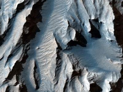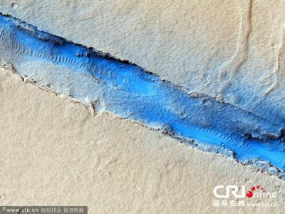 (神秘的地球)据CFP:美国宇航局1月15日公布的图片显示火星科柏洛斯槽沟附近有一...