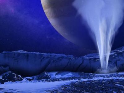 哈勃望远镜最新观测发现木卫二南极出现200千米高的喷射水柱(艺术效果图) (神...