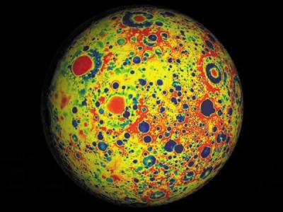 美国宇航局月球重力回溯与内部结构实验室探测器绘制的月球重力场分布图 (神秘的...