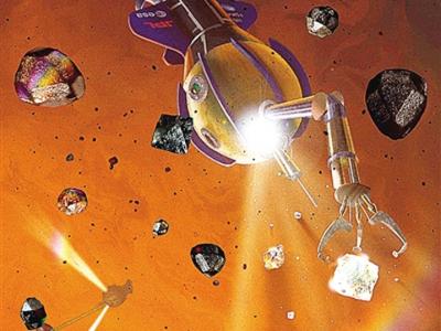 图为《外星海洋》中的插图,显示机器人手伸出来抓住钻石,收集并运回地球。 (神...