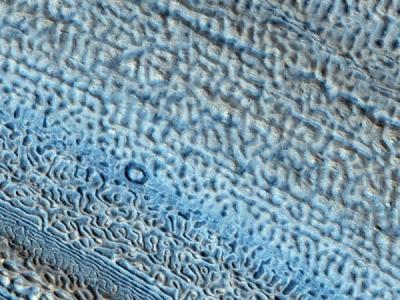火星一座冻结的山丘底部 8月23日,火星勘测轨道飞行器拍下的这张高分辨图片显示...