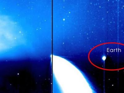 照片左边是太阳日冕物质抛射,中间是泛星彗星,右边那颗才是地球。 我们见过不少...