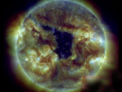太阳动力学天文台观测发现太阳表面出现一个神秘的“巨型空洞”,事实上这是冕洞现...