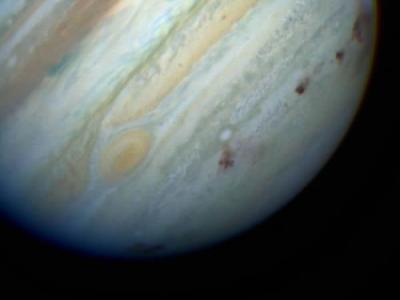 1994年7月,苏梅克-列维九号彗星与木星发生碰撞。彗星碎片在木星大气层中遗留的黑色...