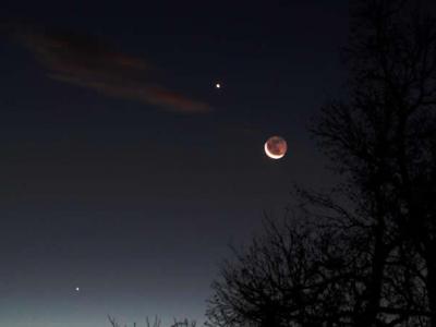 金星和月球。你可以看到水星正在冉冉升起。这张图片拍摄于2012年12月11日 金星可...
