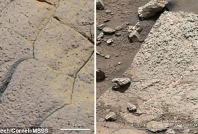 左图是机遇号火星车勘测的岩石样本,右图是好奇号火星车勘测的不同类型岩石样本,...