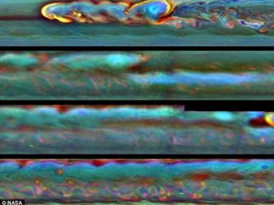 过去几个月中该风暴的演变时间图 该风暴头涡流从其头部甩出的一系列图片 该...