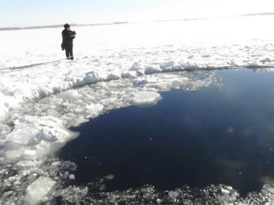 15日,俄罗斯车里雅宾斯克地区,切巴尔库尔湖中出现巨大窟窿,被疑为陨石残骸撞击...