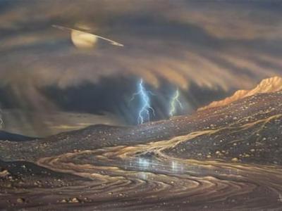 艺术家绘制的土卫六表面图像,目前科学家最新一项研究显示,土卫六甲烷海洋表面可...