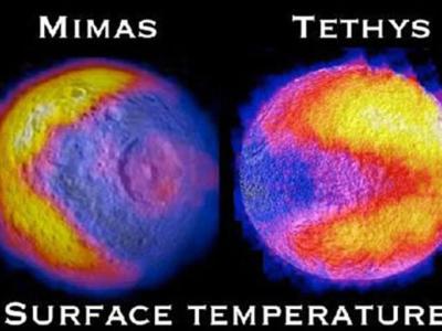 卡西尼探测器观测到土卫三热成像图像呈现“吃豆人”结构,两年前曾发现土卫一也是...