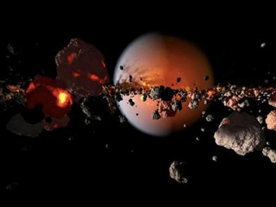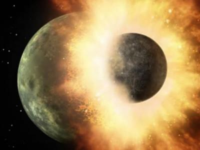 在地球形成的初期,有一颗体积如火星般大小的星球与地球碰撞 碰撞飞溅出的大量...