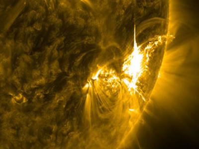 NASA太阳动态观测卫星拍摄到的X级耀斑特写图 随着太阳耀斑频繁出现,且范围越来...