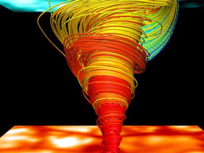 图片所示为对将所观测的太阳表面与外层大气连接起来的一个涡流磁性“龙卷风”所做...