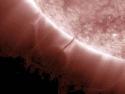 美国宇航局的太阳动力学观测卫星拍摄的照片,展现了怪异的景象:一个体积与行星相...