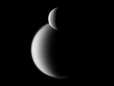 NASA最新图片显示土星的两个巨大卫星图像
