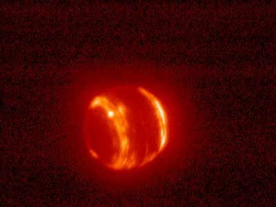 这是凯克望远镜自适应光学系统拍摄的红外光波段的海王星图像 这是海王星和它的...