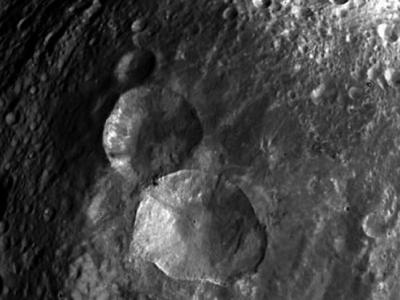 灶神星“雪人”奇特地形:一排三个陨石坑 研究人员称,首批近距离拍摄的灶神星照...