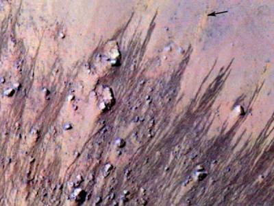美国科学家首次发现火星上可能有流体水的
