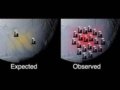 这张图表采用的数据来自卡西尼探测器。显示土卫二南极释放热量的功率远高于科学家...
