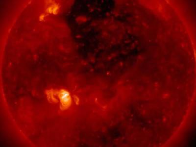 2011年2月1日,日出太阳探测器拍摄到两个壮观的太阳冕洞,一个位于太阳的中上侧,...