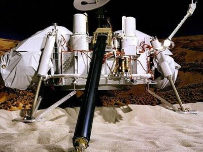 “海盗1号”登陆器模型,它在20世纪70年代探测火星,并在这颗红色行星的土壤里发...