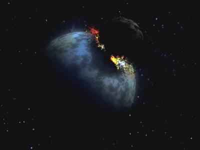 45亿年前地球和一颗类火星星体碰撞形成月球 月球遭受一颗类似水星大小的星体碰...