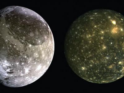 几十亿年前的一场彗星暴产生的热量改变了木卫三(左)的外貌,但木卫四(右)则基...