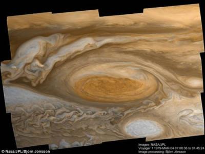 业余天文爱好者制作出木星大红斑细节照片 业余天文爱好者比约恩·乔恩森利用...