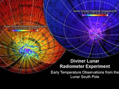 月球南极附近的紫色代表了在白天(左)和夜间(右)都寒冷的地点。 太阳系中最冷...