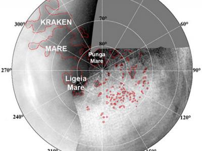 从卡西尼号探测器传回的图像中可以看出,在甲烷云团下,土卫六的表明布满了巨大的...