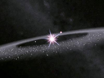 艺术表现恒星北落师门环绕盘中两个行星相撞的过程。图片来源:uux.cn托马斯·穆勒(...