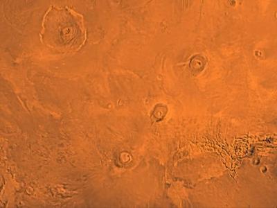 火星上的萨希斯区域,包括三个火山(Arsia、Pavonis、Ascraeus),以及在左上角的奥...