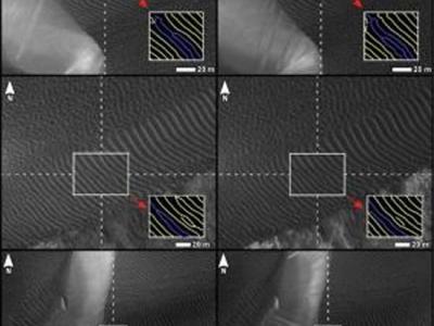 本图展示的是HiRISE拍摄到的火星尼里·帕特拉地区沙丘条纹变化比较图 科学家...
