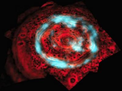 拍摄到得土星极光数码恢复图 土星极光的高度揭示了土星大气和我们地球大气之间...