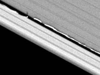 出现在土星光环上的塔状突起 土星光环上的塔状突起为卫星引力所致 据俄罗斯《...