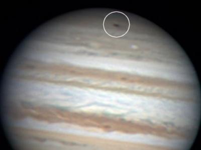澳大利亚业余天文爱好者拍摄的照片显示木星的南极出现了黑斑(图片上方,照片为倒...