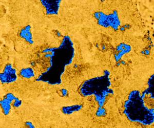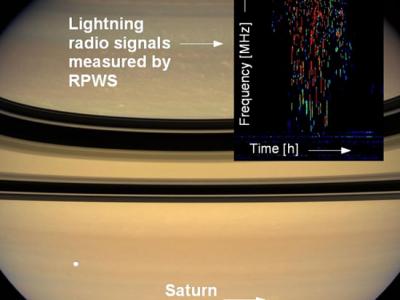 2004年12月14日“卡西尼”号飞船拍摄的土星照片,右下角是卫星土卫六。 土卫六...