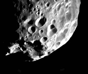 这张照片是在“卡西尼”号靠近土卫八时拍摄的,当时两者相距大约3870公里,显示了...