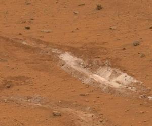 勇气号的轮子挖起硅沉积物 勇气号火星车模拟图 美国宇航局表示,“勇气”...