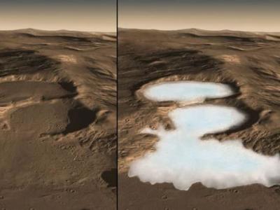 火星上存在被埋没的冰川 美国国家航空和航天局(NASA)11月20日公布的电脑三维图...
